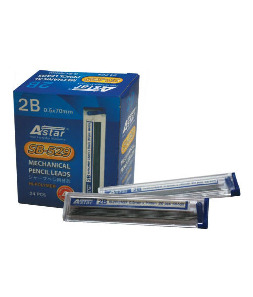 Refill POLYMER LEADS for mechanical pencils. The leads are for general writing and provide intense black lines. 20 leads come in a tube, fitted with a push cap for easy refilling. The 2B leads have a length of 70 mm
